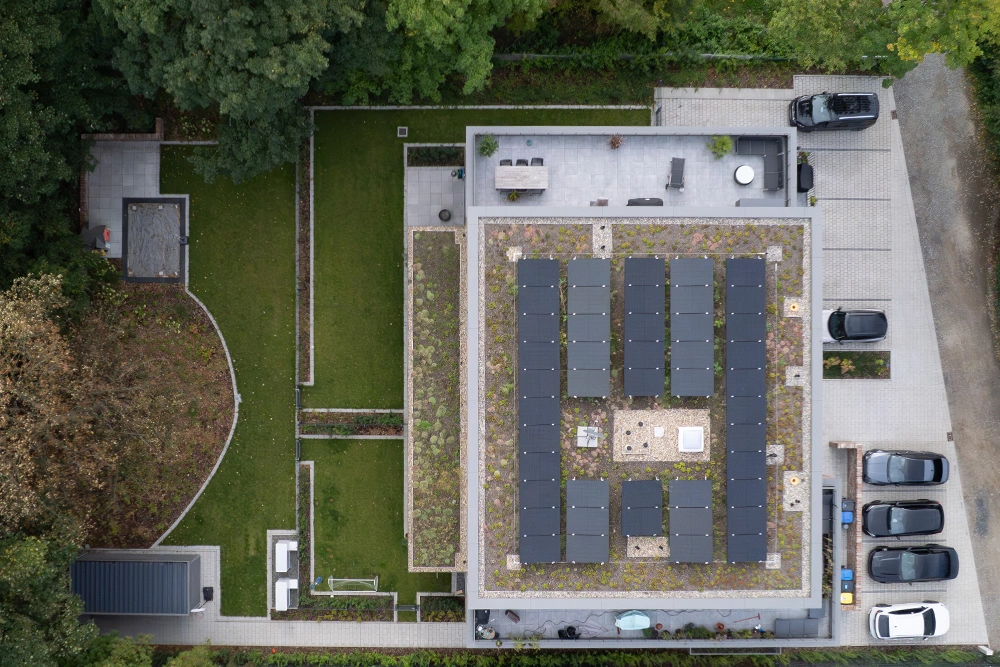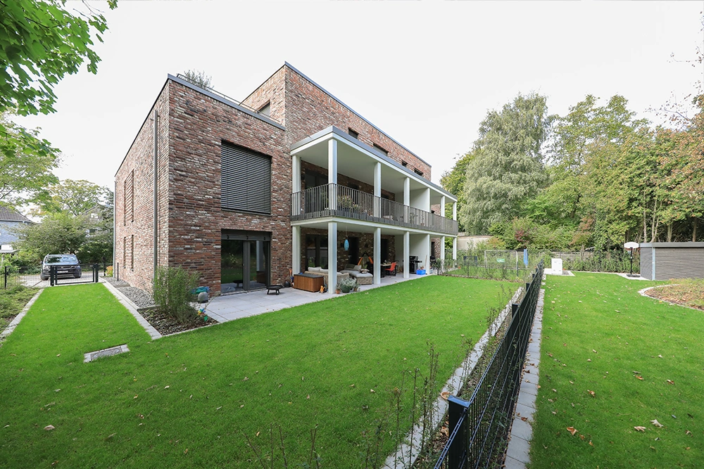 Wohnhaus im Grünen – einladende Erschließung vorn, geschützte Gärten hinten.